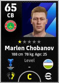 . Marlen Chobanov is a Center Back footballer from Uzbekistan who plays for Fc Istiklol Dushanbe in eFootball 2026.