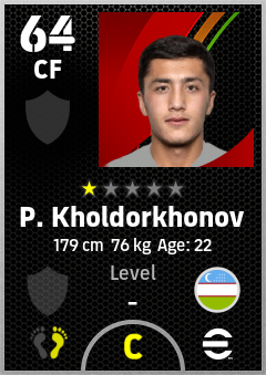 . P. Kholdorkhonov is a Center Forward footballer from Uzbekistan who plays for Free in eFootball 2026.