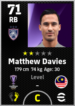 . Matthew Davies is a Right Back footballer from Malaysia who plays for Johor Darul Ta'zim Fc in eFootball 2026.