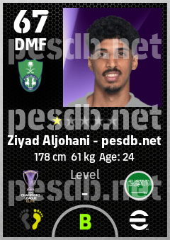 . Ziyad Aljohani is a Defensive Midfielder footballer from Saudi Arabia who plays for Al Ahli Saudi Fc in eFootball 2026.