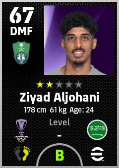 . Ziyad Aljohani is a Defensive Midfielder footballer from Saudi Arabia who plays for Al Ahli Saudi Fc in eFootball 2026.