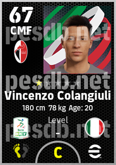 . Vincenzo Colangiuli is a Center Midfielder footballer from Italy who plays for Bari Br in eFootball 2026.