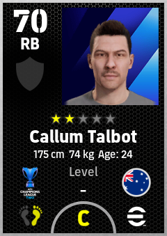 . Callum Talbot is a Right Back footballer from Australia who plays for Macarthur Fc in eFootball 2026.