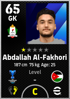 . Abdallah Al-Fakhori is a Goalkeeper footballer from Jordan who plays for Al Wehdat Sc in eFootball 2026.