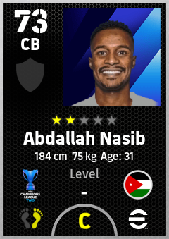 . Abdallah Nasib is a Center Back footballer from Jordan who plays for Al Zawraa Sc in eFootball 2026.