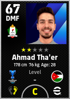 . Ahmad Tha'er is a Defensive Midfielder footballer from Jordan who plays for Al Wehdat Sc in eFootball 2026.