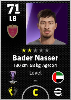 . Bader Nasser is a Left Back footballer from United Arab Emirates who plays for Al Wahda Fc in eFootball 2026.