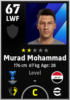 . Murad Mohammad is a Left Wing Forward footballer from Iraq who plays for Al Zawraa Sc in eFootball 2026.