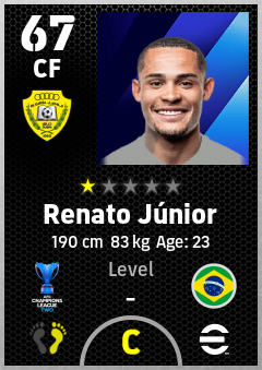 . Renato Júnior is a Center Forward footballer from Brazil who plays for Al Wasl Fc in eFootball 2026.
