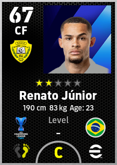 . Renato Júnior is a Center Forward footballer from Brazil who plays for Al Wasl Fc in eFootball 2026.