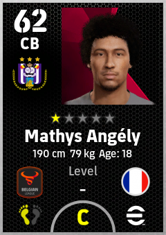 . Mathys Angély is a Center Back footballer from France who plays for Anderlecht Pw in eFootball 2026.