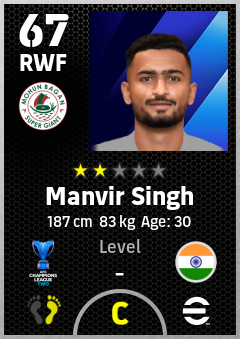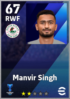 . Manvir Singh is a Right Wing Forward footballer from India who plays for Mohun Bagan Super Giant in eFootball 2026.