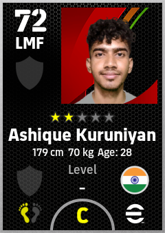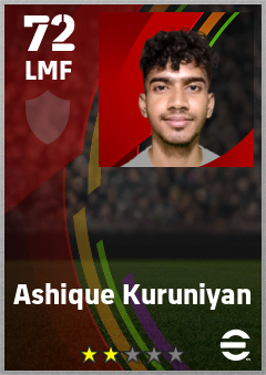 . Ashique Kuruniyan is a Left Midfielder footballer from India who plays for Free in eFootball 2026.