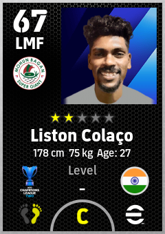 . Liston Colaço is a Left Midfielder footballer from India who plays for Mohun Bagan Super Giant in eFootball 2026.