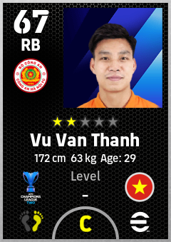 . Vu Van Thanh is a Right Back footballer from Vietnam who plays for Cong An Hanoi Fc in eFootball 2026.