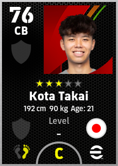 . Kota Takai is a Center Back footballer from Japan who plays for Free in eFootball 2026.