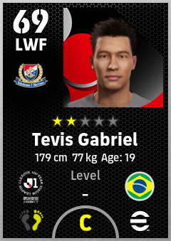 . Tevis Gabriel is a Left Wing Forward footballer from Brazil who plays for Yokohama F. Marinos in eFootball 2026.