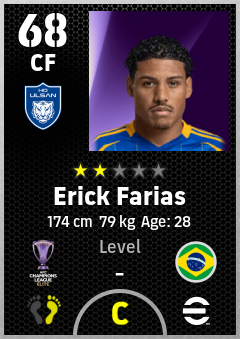 . Erick Farias is a Center Forward footballer from Brazil who plays for Ulsan Hd Fc in eFootball 2026.