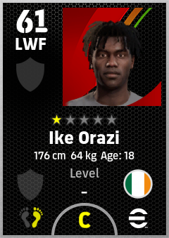 . Ike Orazi is a Left Wing Forward footballer from Republic Of Ireland who plays for Free in eFootball 2026.