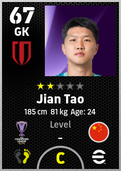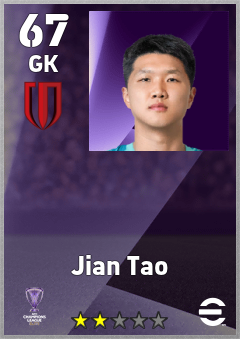 . Jian Tao is a Goalkeeper footballer from China Pr who plays for Chengdu Rongcheng Fc in eFootball 2026.