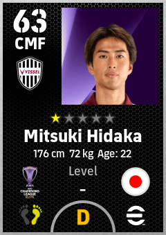 . Mitsuki Hidaka is a Center Midfielder footballer from Japan who plays for Vissel Kobe in eFootball 2026.