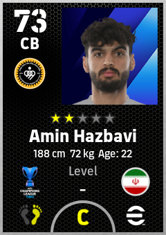 . Amin Hazbavi is a Center Back footballer from Ir Iran who plays for Sepahan Sc in eFootball 2026.