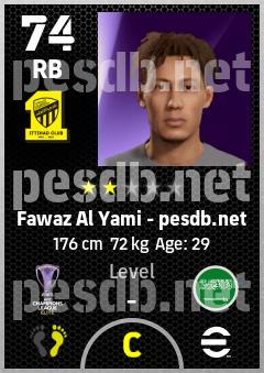 . Fawaz Al Yami is a Right Back footballer from Saudi Arabia who plays for Al Ittihad Club in eFootball 2026.