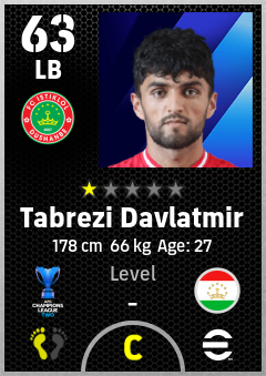 . Tabrezi Davlatmir is a Left Back footballer from Tajikistan who plays for Fc Istiklol Dushanbe in eFootball 2026.