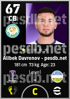 . Alibek Davronov is a Center Back footballer from Uzbekistan who plays for Fc Nasaf in eFootball 2026.