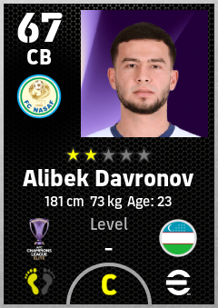. Alibek Davronov is a Center Back footballer from Uzbekistan who plays for Fc Nasaf in eFootball 2026.