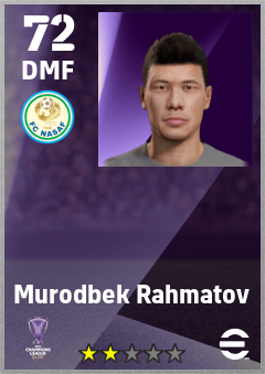 . Murodbek Rahmatov is a Defensive Midfielder footballer from Uzbekistan who plays for Fc Nasaf in eFootball 2026.