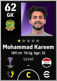 . Mohammad Kareem is a Goalkeeper footballer from Iraq who plays for Al Shorta Sc in eFootball 2026.