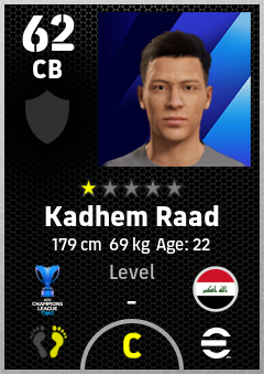 . Kadhem Raad is a Center Back footballer from Iraq who plays for Al Zawraa Sc in eFootball 2026.