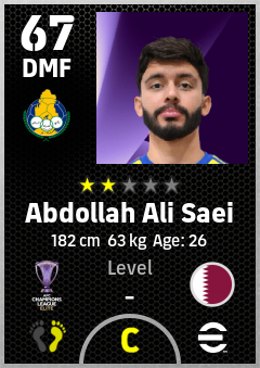. Abdollah Ali Saei is a Defensive Midfielder footballer from Qatar who plays for Al Gharafa Sc in eFootball 2026.