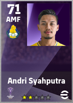 . Andri Syahputra is a Attacking Midfielder footballer from Qatar who plays for Al Gharafa Sc in eFootball 2026.