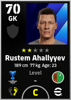 . Rustem Ahallyyev is a Goalkeeper footballer from Turkmenistan who plays for Arkadag Fk in eFootball 2026.