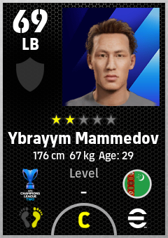 . Ybrayym Mammedov is a Left Back footballer from Turkmenistan who plays for Arkadag Fk in eFootball 2026.