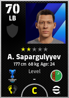 . A. Sapargulyyev is a Left Back footballer from Turkmenistan who plays for Arkadag Fk in eFootball 2026.