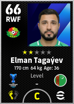 . Elman Tagaýev is a Right Wing Forward footballer from Turkmenistan who plays for Ahal Fc in eFootball 2026.