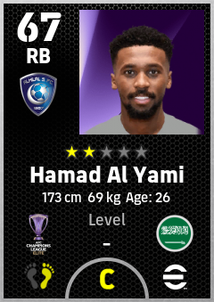 . Hamad Al Yami is a Right Back footballer from Saudi Arabia who plays for Al Hilal Sfc in eFootball 2026.