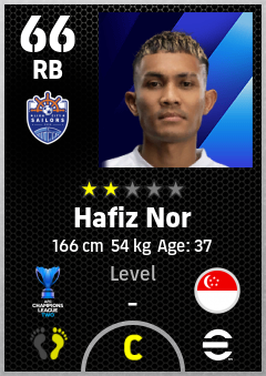 . Hafiz Nor is a Right Back footballer from Singapore who plays for Lion City Sailors Fc in eFootball 2026.