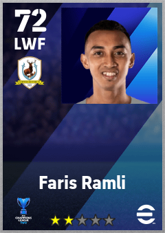 . Faris Ramli is a Left Wing Forward footballer from Singapore who plays for Tampines Rovers Fc in eFootball 2026.