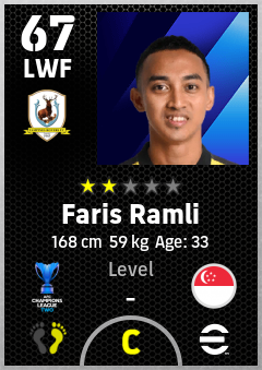 . Faris Ramli is a Left Wing Forward footballer from Singapore who plays for Tampines Rovers Fc in eFootball 2026.