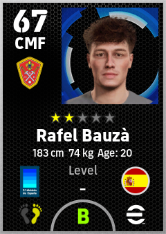 . Rafel Bauzà is a Center Midfielder footballer from Spain who plays for Miranda De Ebro Rn in eFootball 2026.