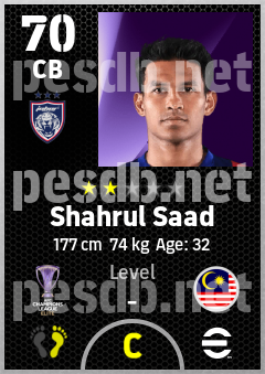 . Shahrul Saad is a Center Back footballer from Malaysia who plays for Johor Darul Ta'zim Fc in eFootball 2026.