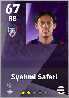. Syahmi Safari is a Right Back footballer from Malaysia who plays for Johor Darul Ta'zim Fc in eFootball 2026.