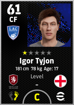 . Igor Tyjon is a Center Forward footballer from England who plays for Blackburn Bw in eFootball 2026.