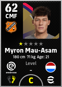 . Myron Mau-Asam is a Center Midfielder footballer from Netherlands who plays for Fc Volendam in eFootball 2026.