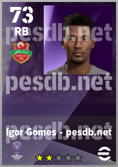 . Igor Gomes is a Right Back footballer from Brazil who plays for Shabab Al Ahli Dubai Fc in eFootball 2026.