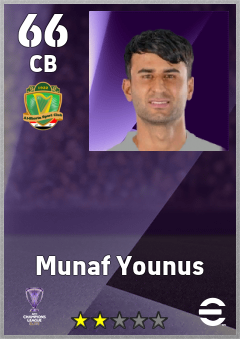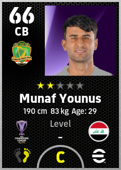 . Munaf Younus is a Center Back footballer from Iraq who plays for Al Shorta Sc in eFootball 2026.